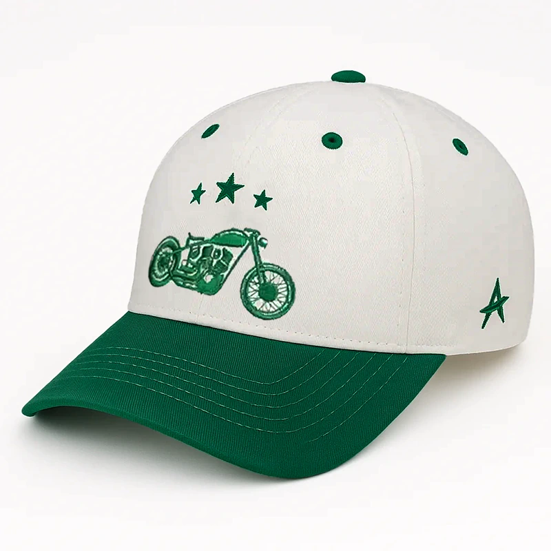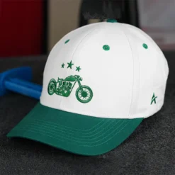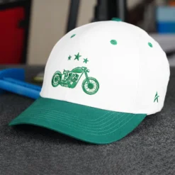 CP1021 Green & White Cap with Vintage Moto Vibe