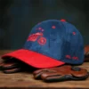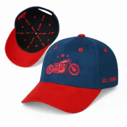 Blue & Red Baseball Cap with Vintage Motorcycle Embroidery | Stylish Unisex Snapback Hat for Bikers & Casual Wear