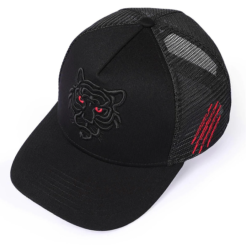 Black Tiger Eye Mesh Cap – Cotton Comfort with Red Scratch Design | MahirExpress.com
