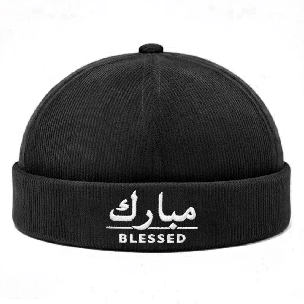 **🧢 প্রিমিয়াম কর্ডুরয় “Blessed / مُبارك” রোল-বিনি ক্যাপ